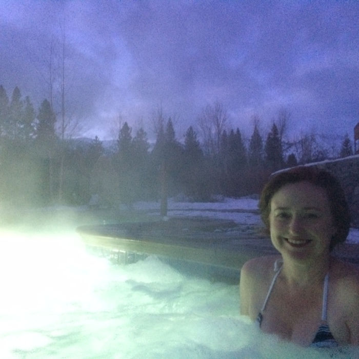 Aside from being gobsmacked by the scenery and taking hundreds of photographs of it, we were totally jazzed by sitting in an outdoor spa in the snow at our hotel one night … as the steam swirled around us and the stars twinkled overhead.