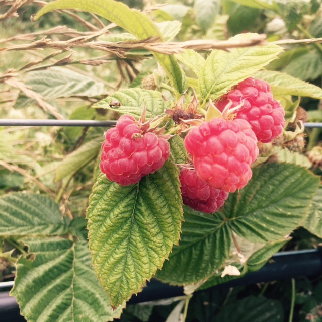 Don’t tell anyone, but DJ stole two raspberries off the bush – against the express orders on the sign – for us to try. Yum.