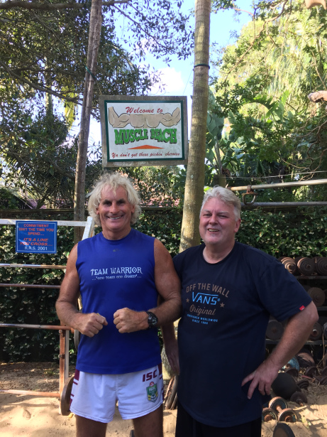 Dave and I eventually joined the regular weeknight warrior weight sessions at Muscle Beach and were introduced as D1 and D2 to a great bunch of blokes from all walks of life – tradies, professionals, students – including Big Patty, Super Sis, Big H, The Enforcer, Gaz, Mighty Morgan, The Moth (as in Behemoth), Sensei Pete and others. That’s D2 immediately to the right of the Warrior in the photo above.