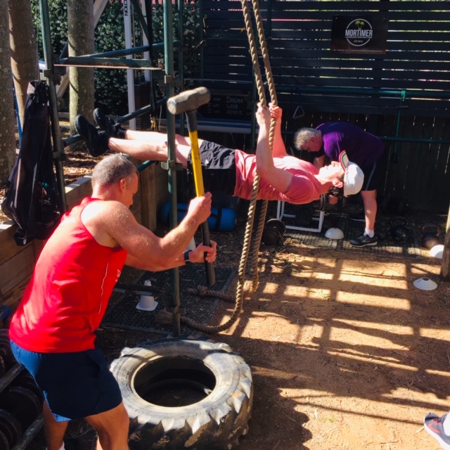 But one song has grown in significance – AC/DCs “Whole Lotta Rosie” – with first verse co-opted to serve as a celebration point of each workout, as we usually have a newcomer or returnee or birthday to mark. The Warrior will walk over to them as they are attempting to bench press and (ahem) ‘sing’: “Let me tell you a story / About a [victims name here] I know / He came to train with the Warrior / And crawled out real slow / He ain’t exactly pretty …” – with the whole group joining in for “ain’t exactly pretty”.