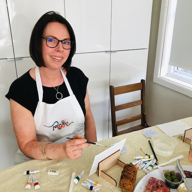 The sip & paint class was held via Zoom and came with the warning that each bottle of ROSIE contains 2.8 standard drinks. Blimey! Fortunately we were comfortably settled at our dining table for the experience.
