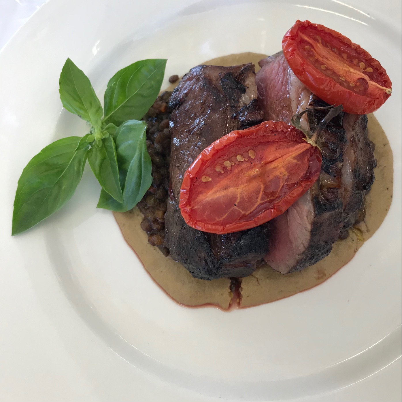 The main of roast Junee lamp rump with braised lentils, eggplant cream, roast cherry tomato and basil was one of our favourite meals of the year. It was matched with Cape Mentelle 2018 ‘Trinders’ Shiraz Cabernet, Cape Mentelle 2017 Shiraz and Cape Mentelle 2016 Cabernet Sauvignon.