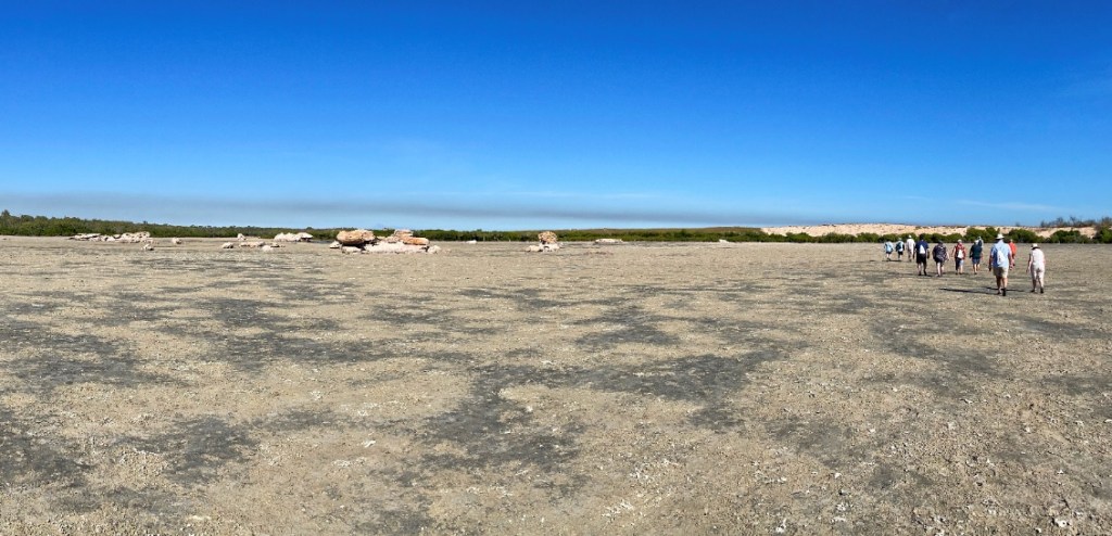 At 7.45am, the tender takes us across to a shell-scattered beach and we walk over the dunes and a salt flat to the wreckage of an airplane from World War 2, which coincidentally crashed at the same time as Darwin was bombed in 1942, hampering rescue efforts.