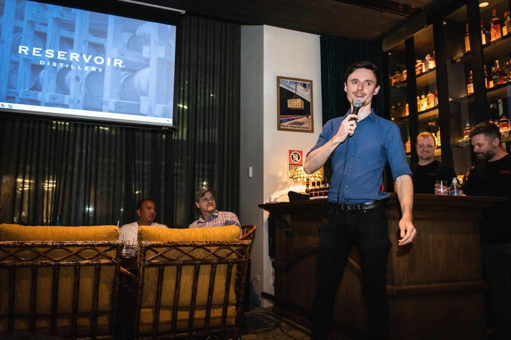 A pre-recorded video from Reservoir Master Distiller Dave Cuttino was played at the start to welcome everyone to the event and give a short summary of the distillery to help set the mood. Master of ceremonies was NOLA Bar Manager Scott Allan (below), with assistance from Oliver Maruda and Chris Ross – co-founders of The Whisky List – which is the importer and distributor of Reservoir in Australia.