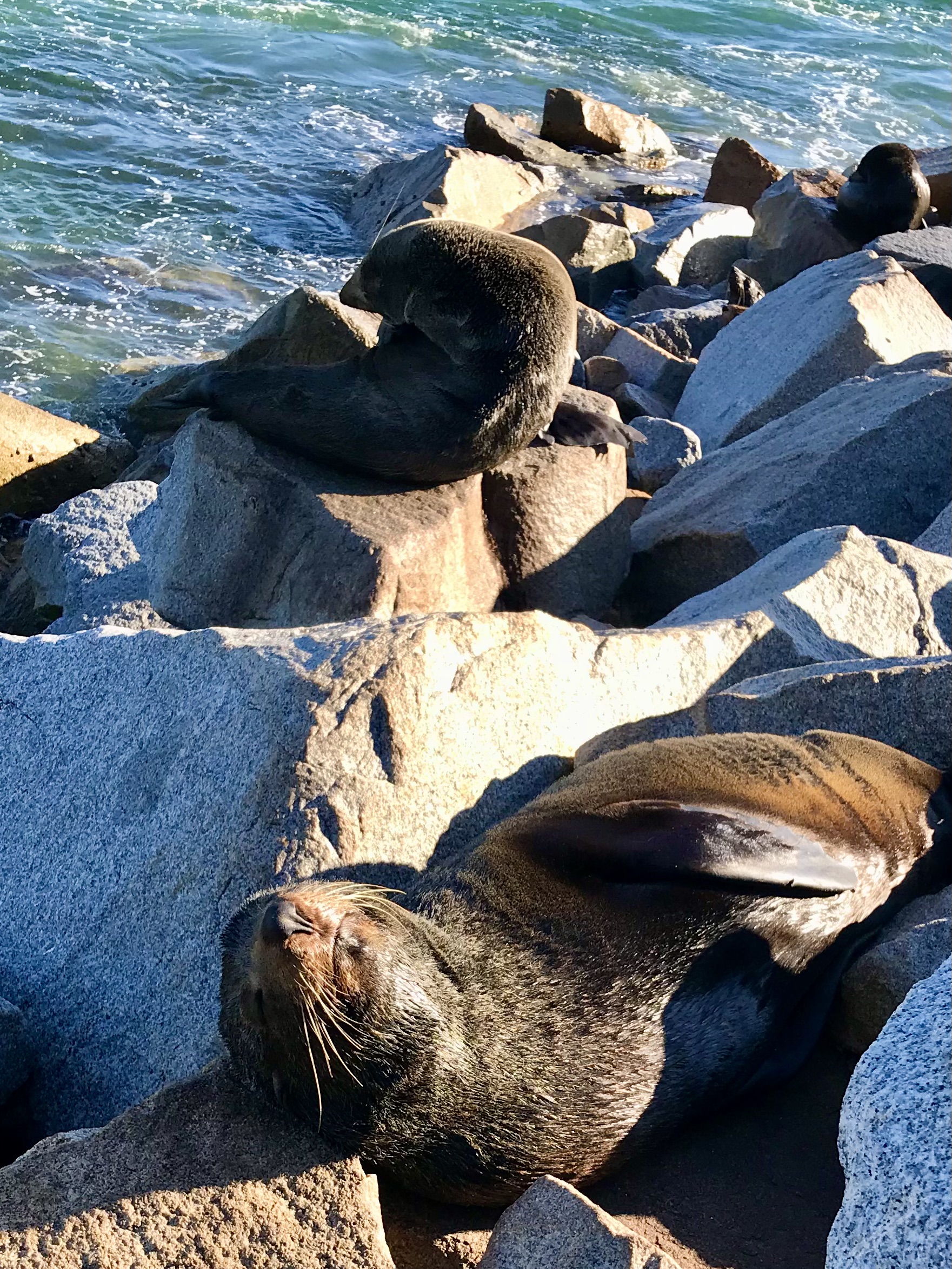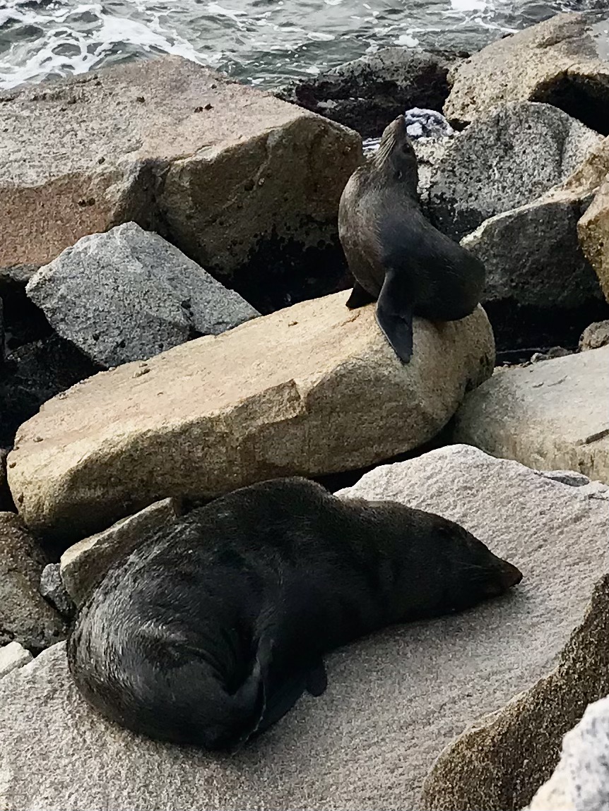 Later in the afternoon we walked out to the breakwater at Wagonga Inlet and perched on the rocks to watch about 10 seals basking in the sun. We were entranced by the huge, lazy creatures.