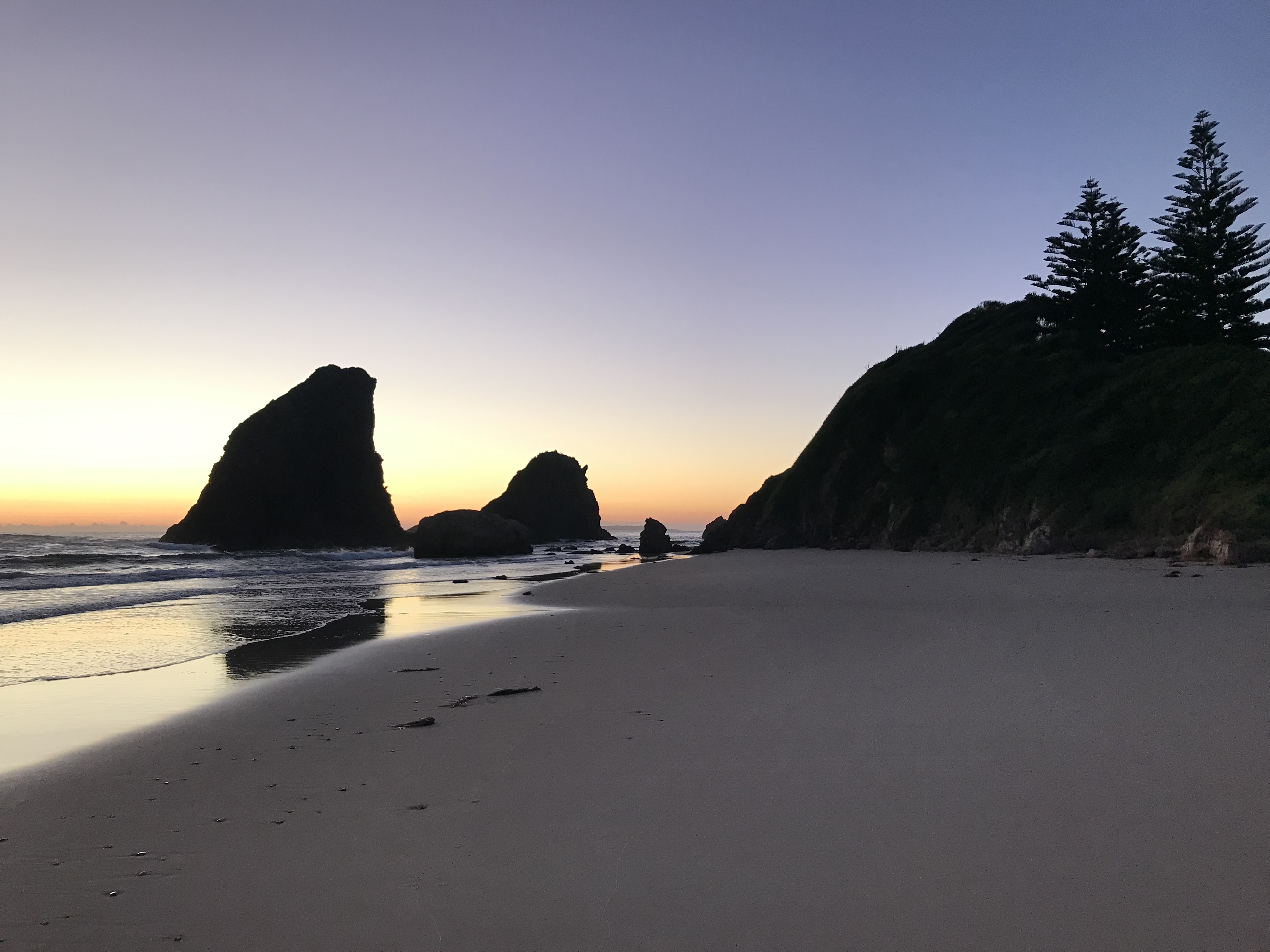 The next morning I was determined to watch the sunrise Glasshouse Rocks, but the beach was only accessible through a graveyard. I arrived in the darkness and started searching around for a white fence that I’d been told marked the beginning of the track down to the beach.