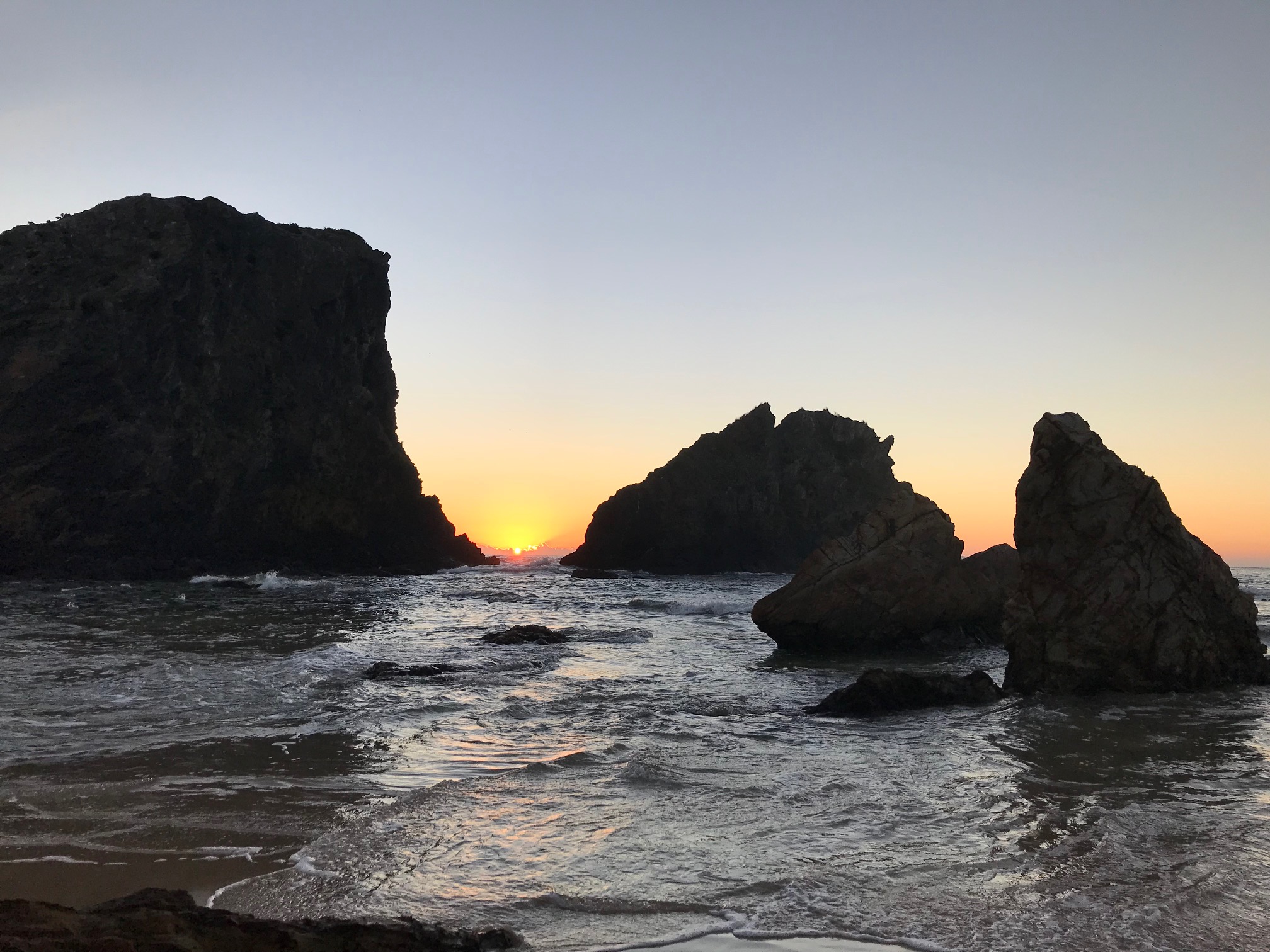 I scrambled down the hillside using my phone as a torch and emerged onto the pristine beach, which I had to myself as I strode towards the Glasshouse Rocks.