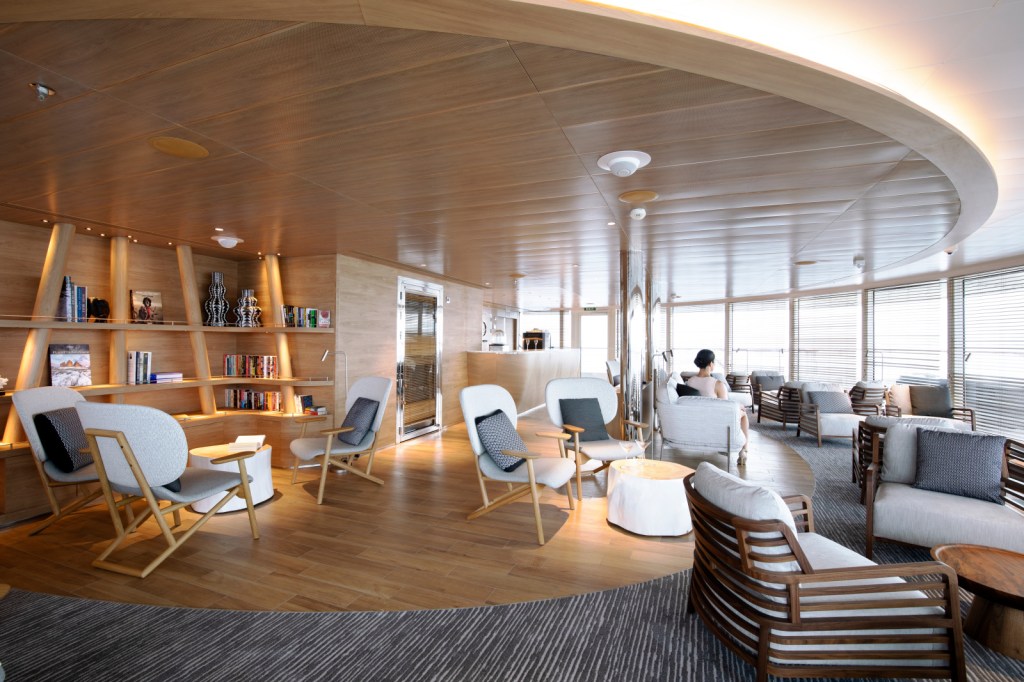 We spent our five days at sea doing not very much at all and loving every minute of it. We would rise in time for a 9am meditation or stretch class, have breakfast in the dining room, laze around drinking coffee, head to the grill for lunch and a few glasses of French wine, have an afternoon nap, visit one of the bars for a pre-dinner cocktail, head to the dining room or grill for dinner, then visit another bar for a post-dinner cocktail.
