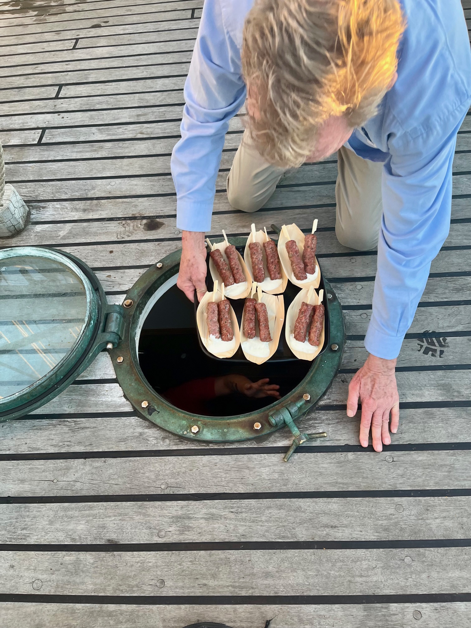 It was very entertaining to watch our canapes magically appear out of the galley via a porthole in the deck!