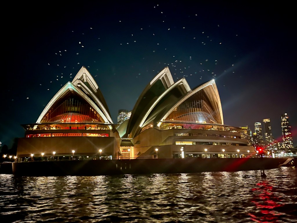 While there appear to be hundreds of stars above the sails, they are actually seagulls circling Sydney Opera House and Sydney Harbour Bridge. It was fascinating to watch them swoop and dive.