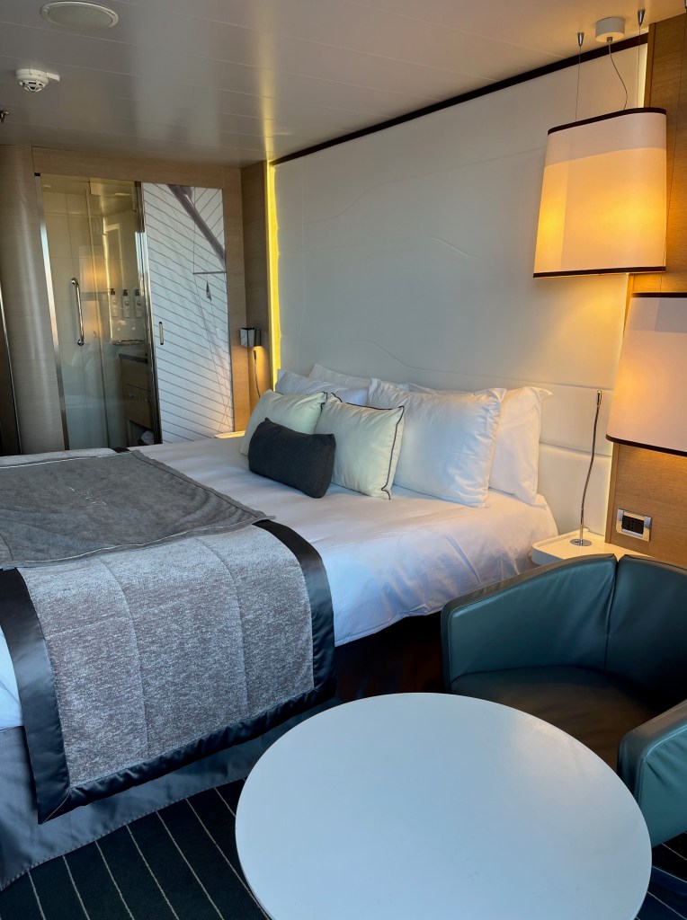 The cruise offered no solo supplement, so we secured two cabins for the price of one! Each featured a king-size bed, a bathroom with shower, separate toilet, balcony, Dyptique Paris bath products, minibar, Nespresso coffee maker, Bose Bluetooth speaker and flat screen TV.