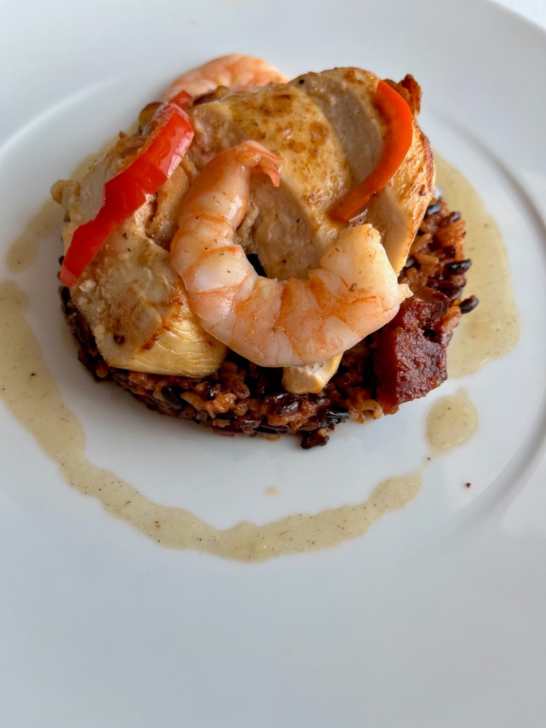 We snorkelled off the beach instead, then enjoyed a deconstructed black rice paella for lunch on the deck of the ship.