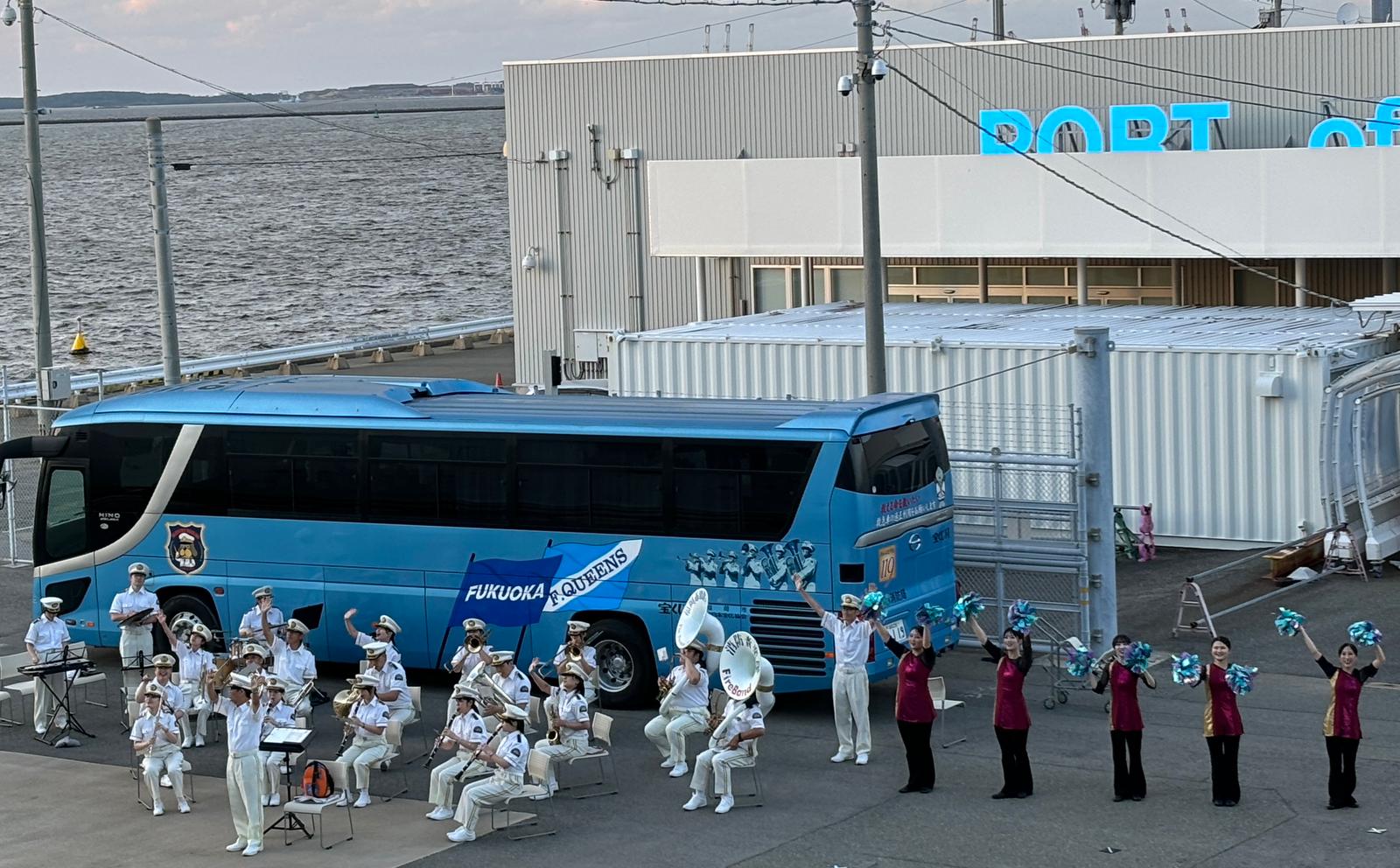 All too soon it was time to head to the dock and embark on our adventure. We settled onto our balcony in the late afternoon sun with glasses of Champagne to watch the Fukouka F Queens brass band serenade us from the dock.