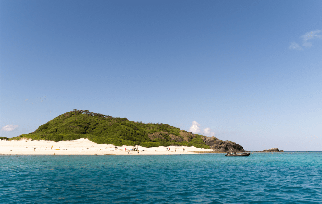 The water in Zamami is exceptionally clear due to a current that keeps plankton levels low and the fact there are no rivers that carry sediments into the sea. It is a vivid shade of blue that has been dubbed “Kerama Blue”.