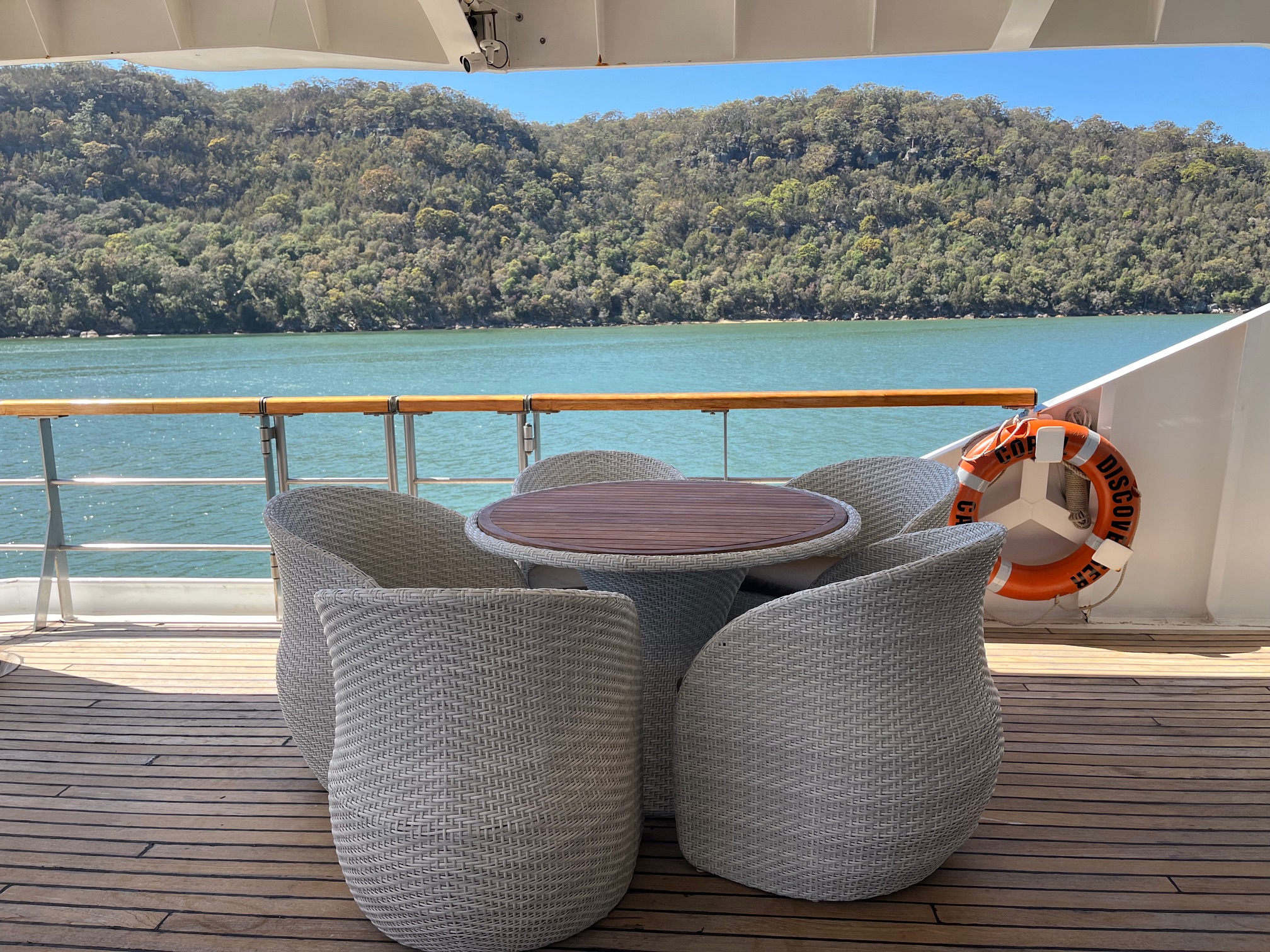 We embarked at Sydney’s Palm Beach Wharf on the most stunningly beautiful day and were dazzled to cross Pittwater and board the Coral Discoverer.