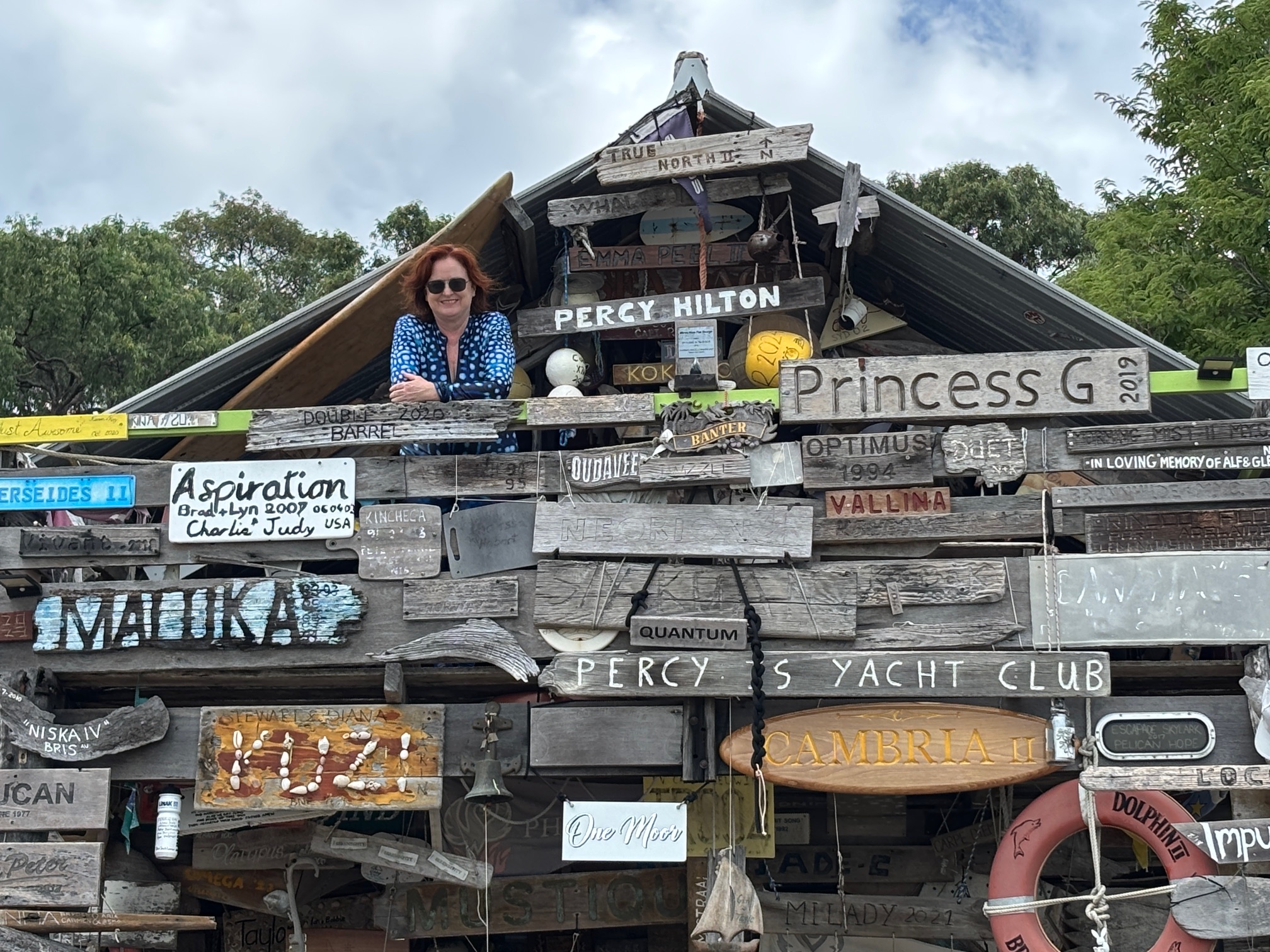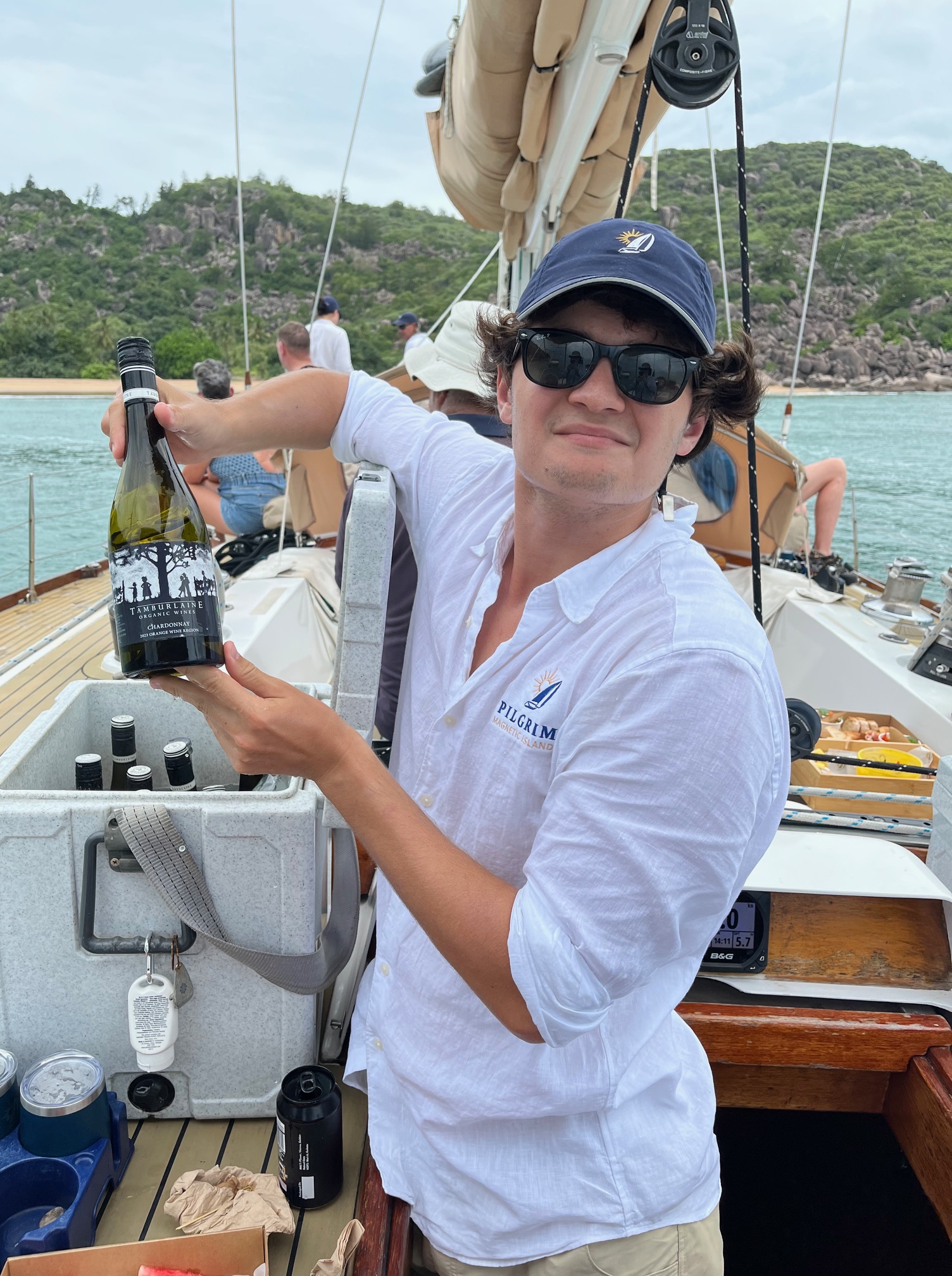 The wines served aboard Pilgrim are from NSW organic winery Tamburlaine and feature labels designed by my talented artist friend Michele Heibel, while the yacht is owned by friends of my late Aunty Barb. We hugged and reminisced about what a special woman Barb had been and how much we missed her.