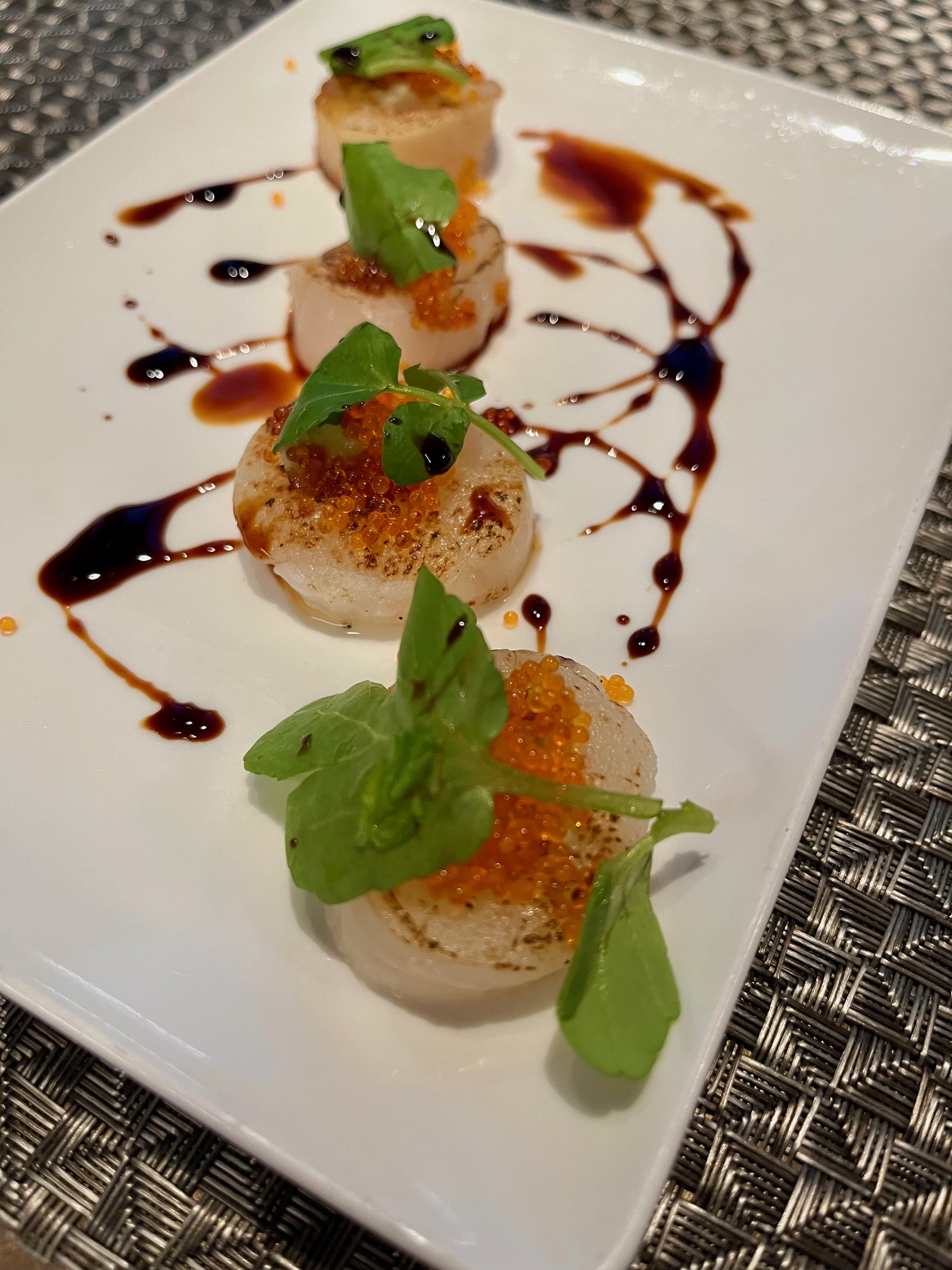 Among our favourite dining experiences was the Sushi & Sake Bar @ Koko’s, where we perched on stools gazing out to sea as we sampled Japanese delicacies, including amazing hand rolls served in Champagne glasses!